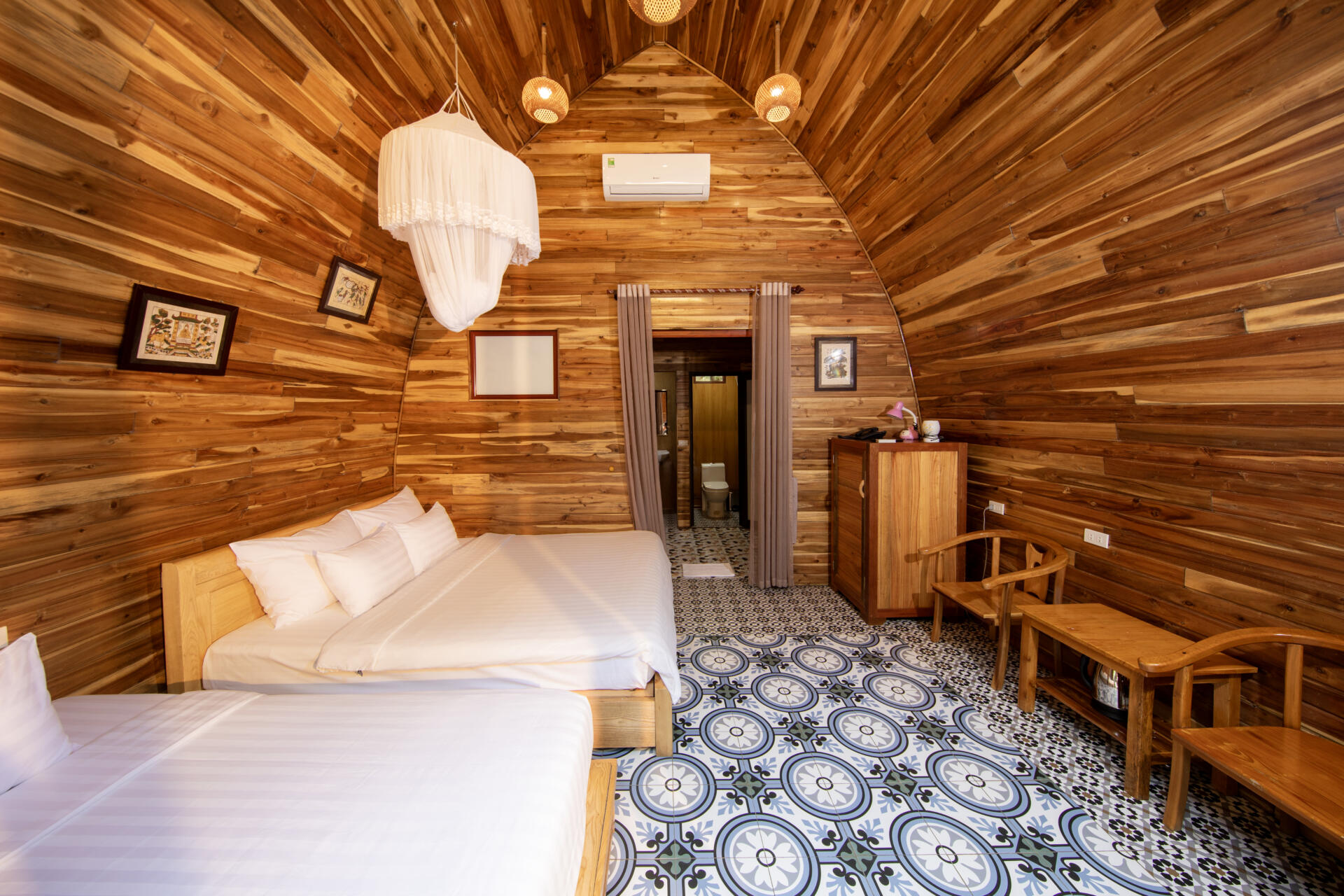 - Số lượng giường: 1 giường King 1m8x2m và 1 giường đơn 1m2x2m – phù hợp cho gia đình small size.