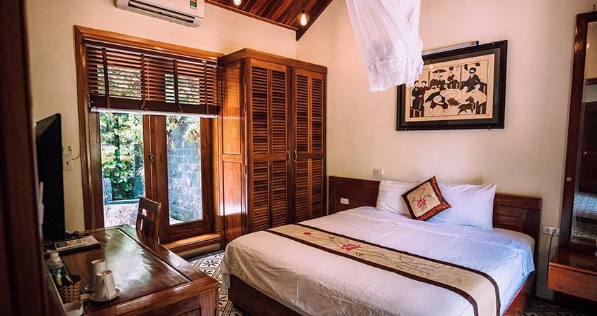 Hệ thống phòng Deluxe Double/Twin Room được trang trí bằng phong cách gần gũi với thiên nhiên, đặc biệt có khu tắm ngoài trời và view hướng ra vách núi sẽ đem lại những trải nghiệm được hòa nhịp cùng với thiên nhiên, đất trời.
