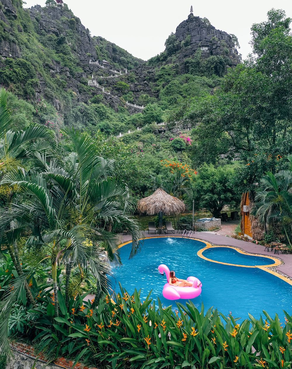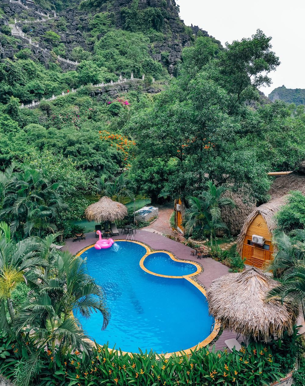Bể bơi 14/04/2022 Bể bơi ở Hang Múa được thiết kế và bao quanh bởi cảnh sắc núi rừng hùng vĩ sẽ khiến cho khách hàng quên đi sự mệt mỏi và đắm chìm vào không gian tươi mát, ngập tràn không khí trong lành của khung cảnh nơi đây. Bể bơi